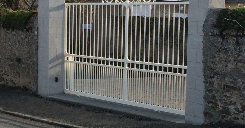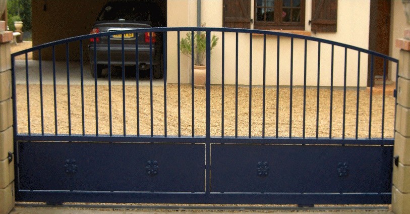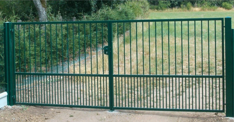 - 2 vantaux manuel – forme droit (A) -soubassement droit (A) et double barreau (DB) – 2 poteaux fer 100X100